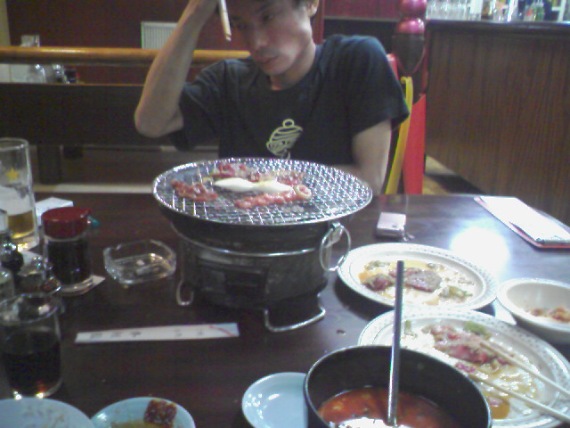 今日も焼き肉です。友達の門出祝いで。野球負けましたな。残念。つーか金がないっす。スタジオ個人練入りました。いろんなモンを曲にしなきゃマズイ!!うわー!!そんで俺の腹もまたヤバい!!腹筋しようと思ったらダルくなった!!あー寝るのか俺!!寝てしまうのか俺!!しば